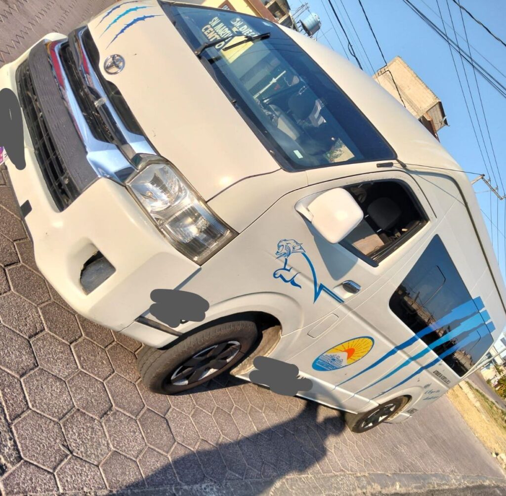 La unidad robada corresponde a una Toyota Hiace modelo 2018, color blanco con franjas azules, con número económico 17 y placas A10217X, perteneciente a la empresa Autobuses San Vicente.