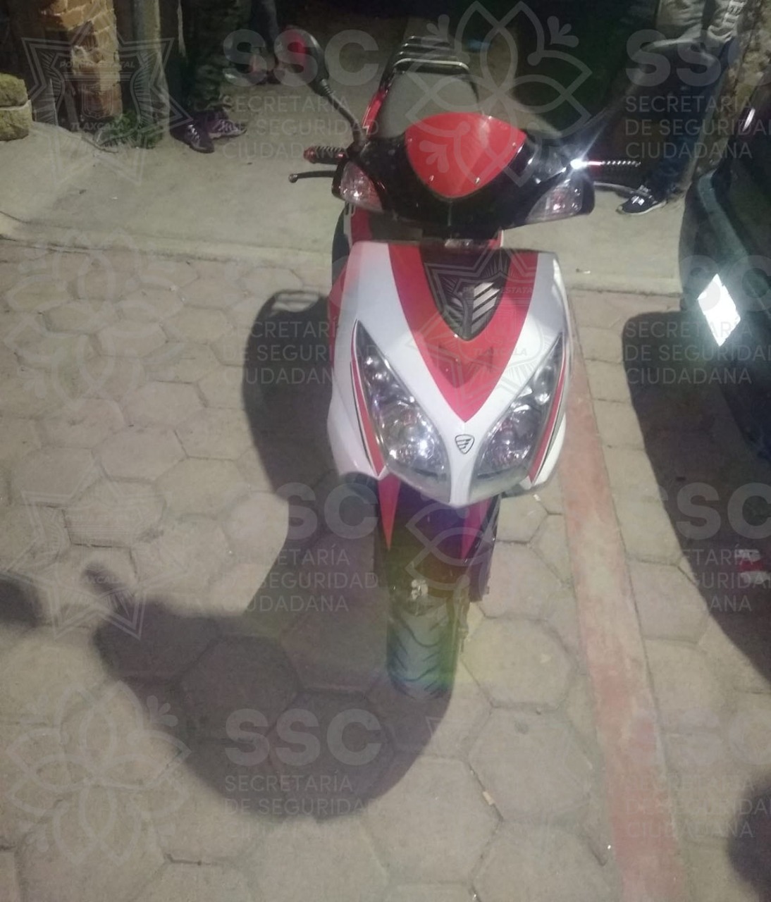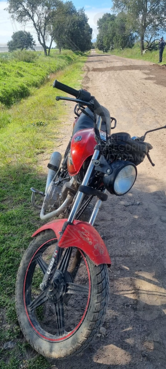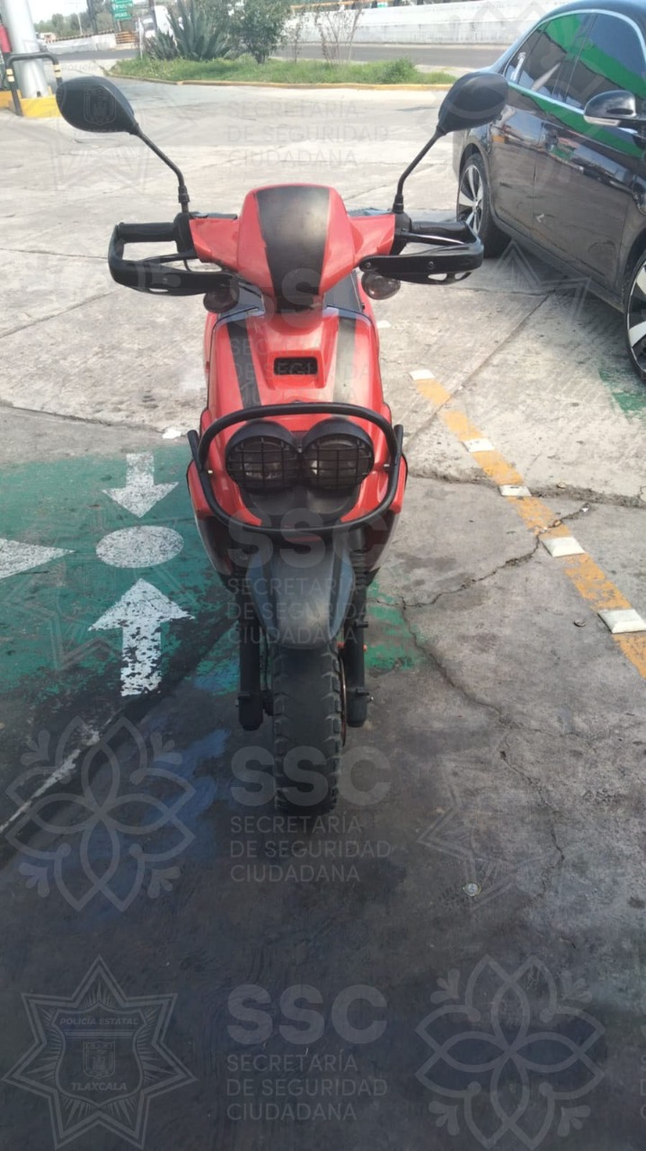 De igual forma, los elementos de la SSC aseguraron en El Carmen Tequexquitla, Tlaxco y Huamantla, respectivamente; una motocicleta marca Italika, línea FT150, modelo 2017, color negro con rojo; una moto Bajaj, línea Pulsar, modelo 2016, color rojo con negro; y un automóvil marca Volkswagen, línea Jetta, modelo 1989, con placas del estado de Puebla. Dichos vehículos cuentan con motor con reporte de robo.