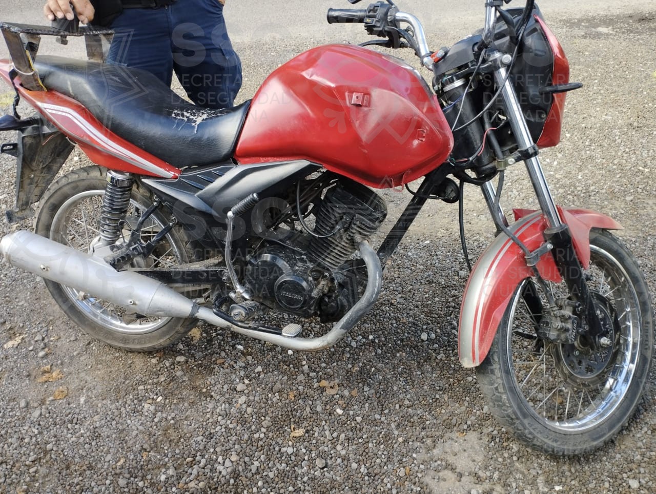 En distintas acciones, el personal de la SSC recuperó una motocicleta marca Italika, línea FT125, modelo 2019, color rojo en la comuna de Ixtacuixtla; así como una Veloci, línea 200 CC, modelo 2019, color rojo en Tlaxco. Ambas fueron consultadas en el Sistema Plataforma México, en los registros del Servicio de Emergencias 911 y en el sistema de Registro Público Vehicular (Repuve) para verificar su estatus y cuentan reporte de robo de motor.