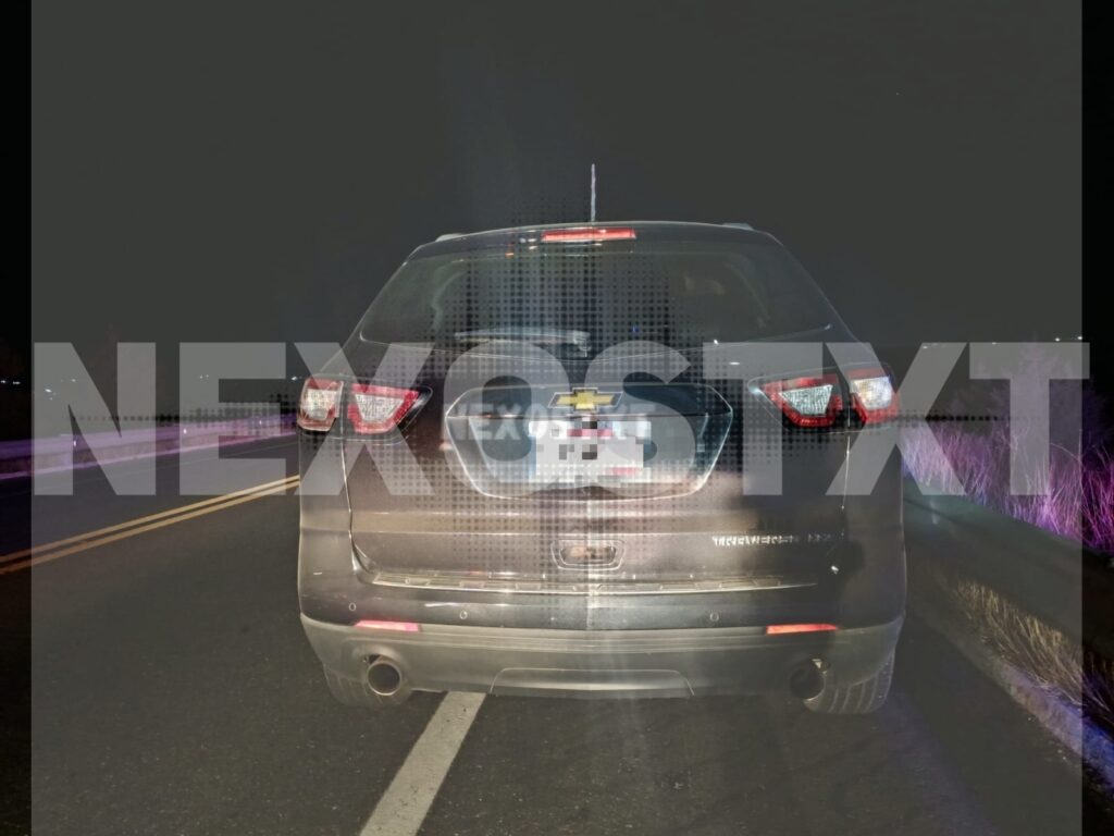 En el sitio confirmaron que se trataba de una camioneta Chevrolet Traverse, color negro, con placas del estado de Tamaulipas, la cual presentaba impactos de proyectil y la ausencia de diversas autopartes.