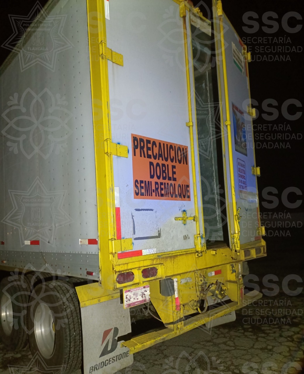 Es así que elementos de la SSC recuperaron en el municipio Huamantla una camioneta de la marca Dodge, tipo Dakota y un remolque tipo plataforma con placas de circulación del Servicio Público Federal 777WT3, mismas que cuentan con reporte de robo.