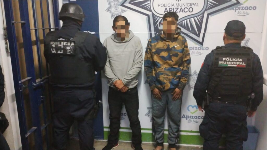 Dos hombres, de 21 y 25 años de edad, fueron puestos a disposición ante la Procuraduría General de Justicia del Estado por elementos de la Dirección de Seguridad Pública Municipal, Vialidad y Transporte de Apizaco, luego de concretar su detención en calles céntricas del municipio tras cometer un asalto con violencia.