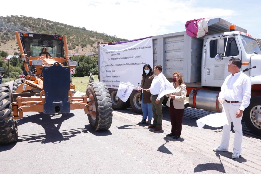 La gobernadora Lorena Cuéllar Cisneros dio banderazo de inicio a los trabajos de rehabilitación de los tramos carreteros Tlaxco-Unión Ejidal Tierra y Libertad, y Mazaquiahuac-La Soledad del municipio de Tlaxco, los cuales tendrán una inversión total de 78 millones 989 mil 207 pesos.