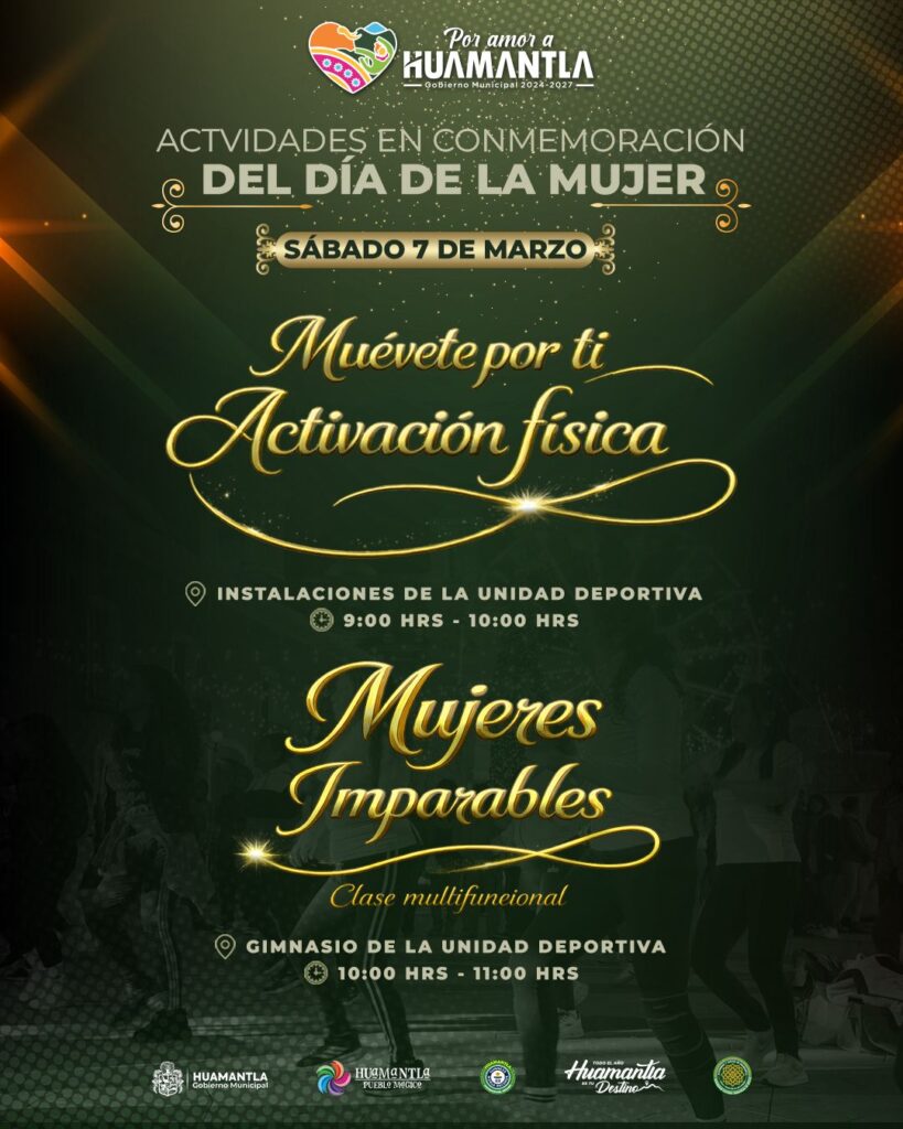 En el marco de la conmemoración del Día Internacional de la Mujer, el Gobierno Municipal de Huamantla que encabeza Salvador Santos Cedillo invita a la ciudadanía a participar en una jornada especial de activación física y bienestar dirigida a fortalecer la salud, la convivencia y el empoderamiento de las mujeres del municipio.