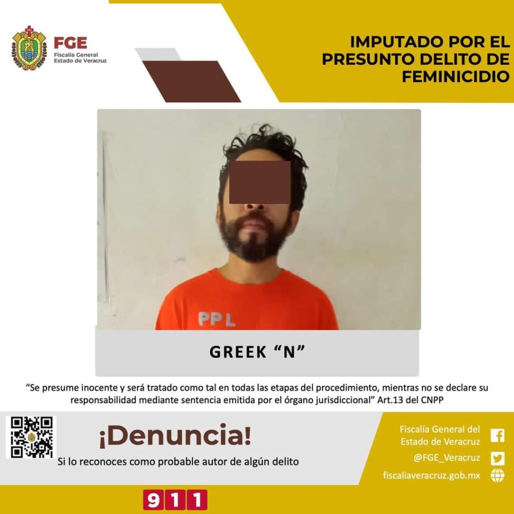 Por lo cual, la Fiscalía de Veracruz inició con las investigaciones correspondientes por feminicidio, que resultó con la detención de Greek N., y que quedó asentado en el expediente 669/2022-B.