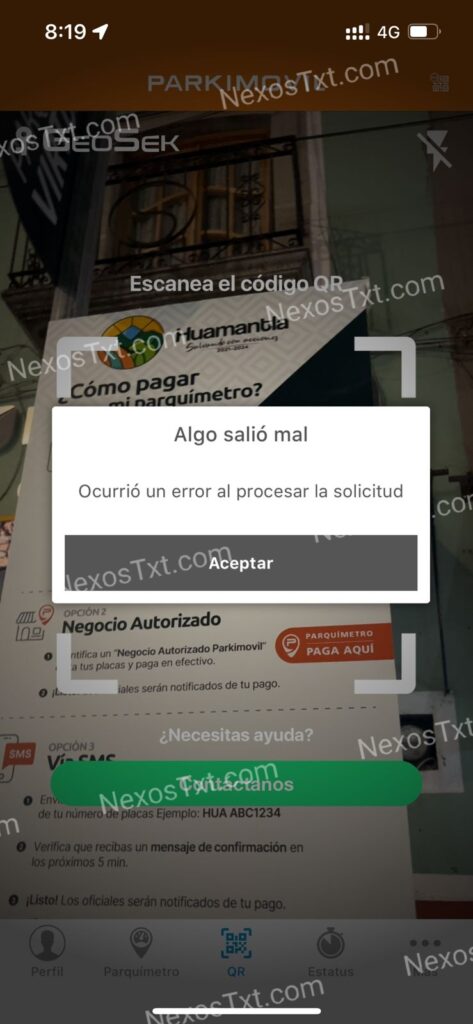 Al momento de escanear para dar la ubicación del vehículo y cumplir con la tarifa de siete pesos la hora, la aplicación o el código Qr muestran error de vinculación, lo que entorpece el proceso de pago.