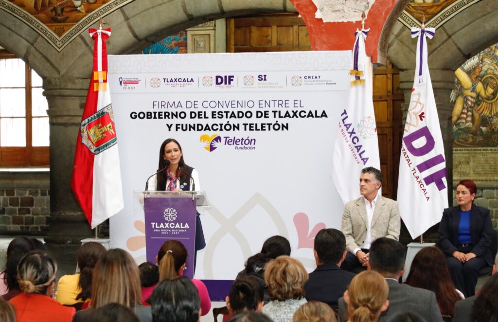 Lo anterior lo comentó durante la firma de convenio de colaboración entre la gobernadora del estado de Tlaxcala, Lorena Cuéllar Cisneros y el fundador y presidente de Fundación Teletón México, Fernando Landeros Verdugo, en el Patio Central de Palacio de Gobierno este día.