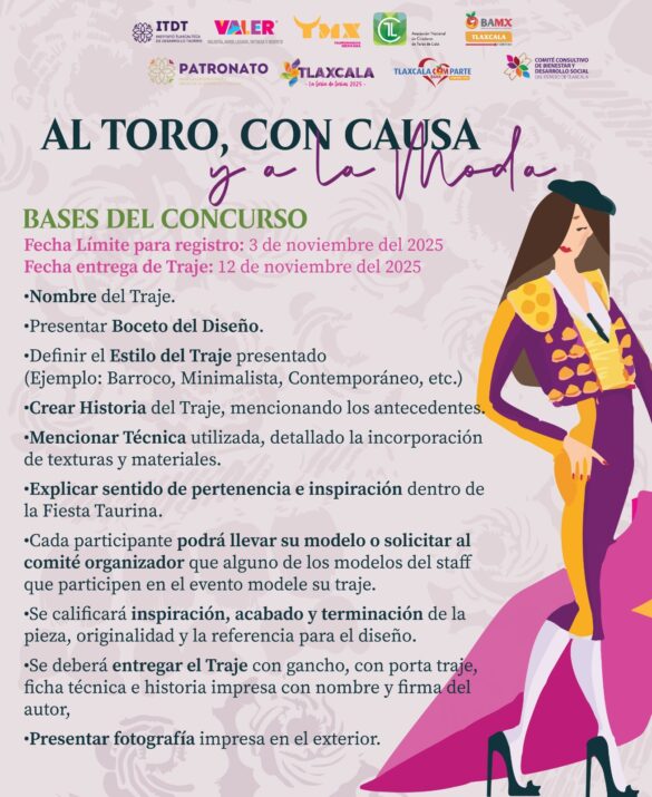 El Patronato para las Exposiciones y Ferias en la Ciudad de Tlaxcala, y el grupo de Ganaderas de Toros de Lidia, anunciaron la segunda edición de la pasarela benéfica “Al Toro con Causa y a la Moda”, evento que reunirá a diseñadores locales y nacionales para reinterpretar la estética taurina en prendas, accesorios y textiles.