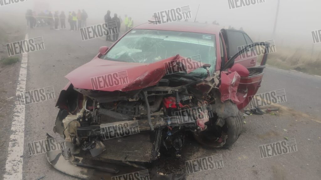 Según testigos, el accidente ocurrió entre un volkswagen tipo Jetta, color guinda, con placas del Estado de México y un tipo Bora, color rojo, con metálicas del Estado de Hidalgo, mismos que se impactaron violentamente de manera frontal.