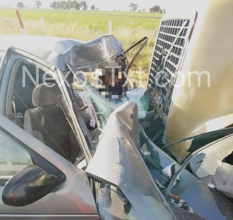 La víctima de este mortal accidente viajaba a bordo de un vehículo color gris, tipo Sentra, con placas antiguas del Distrito Federal y cuyo automóvil invadió el carril donde circulaba un tractocamión con caja seca.