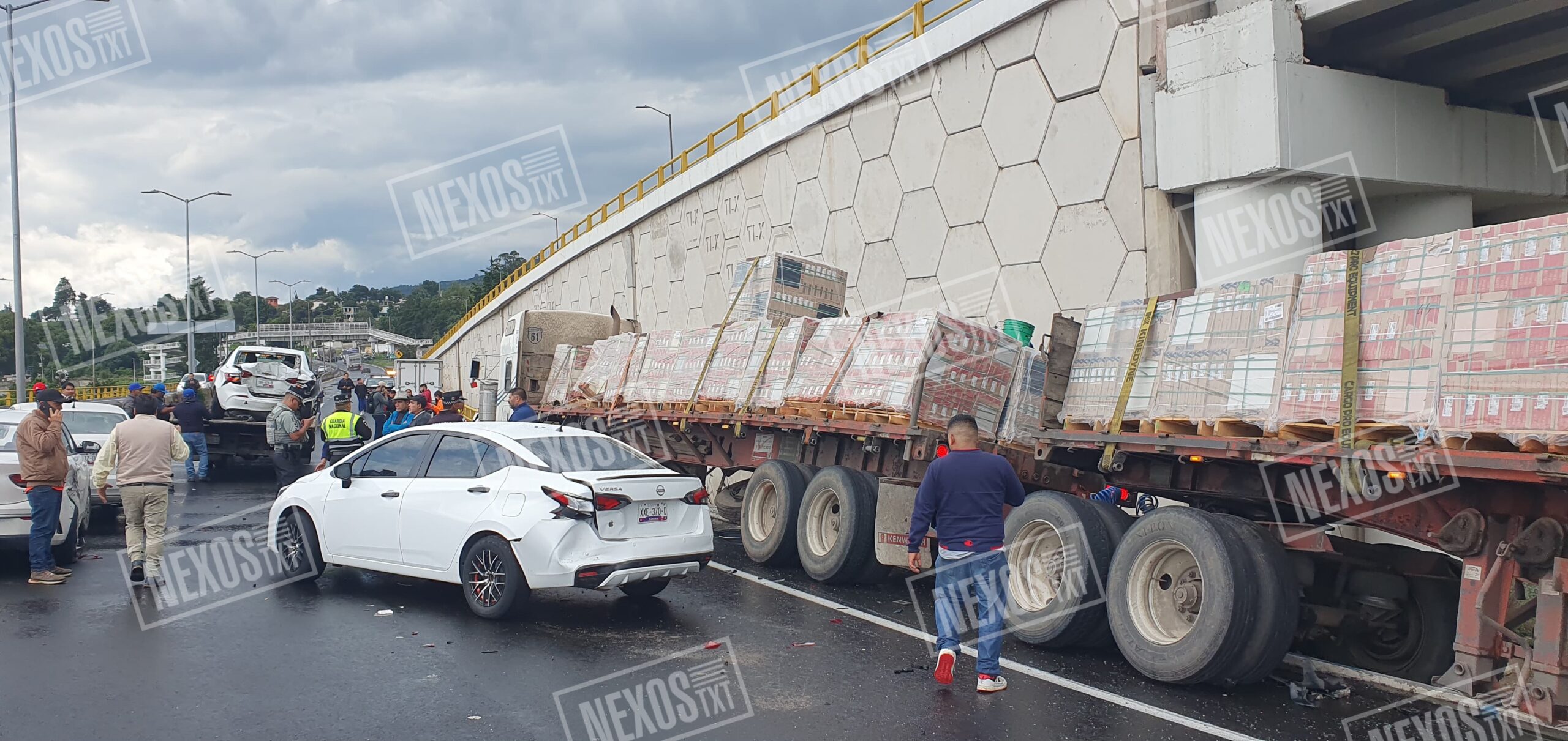 El hecho que movilizó a decenas de unidades de urgencias, se reportó alrededor de las 13:00 horas, y en el se vieron involucrados por lo menos 10 vehículos, entre ellos, el que fue señalado como responsable; el conductor de un tráiler doble semiremolque cargado con loseta, y del cual, el conductor y una acompañante se habrían dado a la fuga con dirección a Tizatlán.