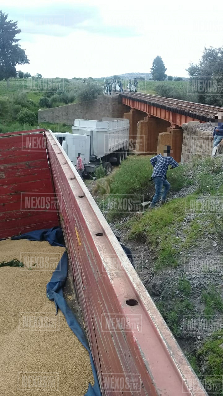 La mercancía que quedó esparcida por terrenos de labor, fue resguardada mientras personal de Ferrosur realizó la reparación de una manguera que permite la unión de los vagones de la locomotora.