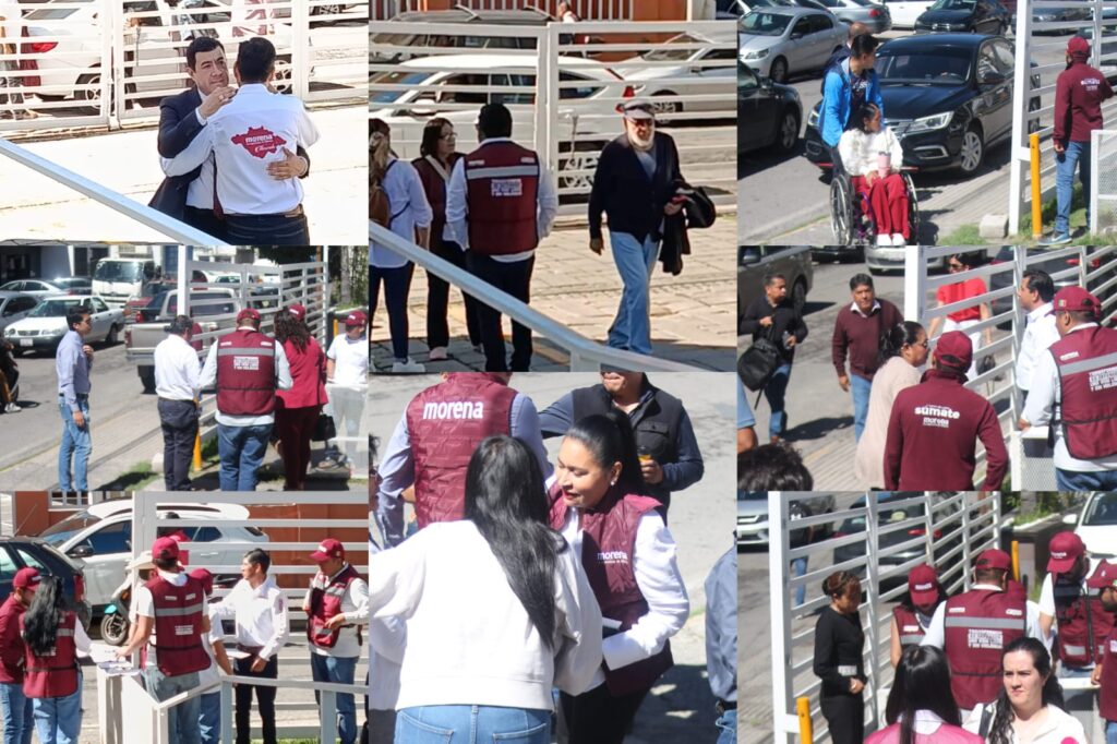 Funcionarios públicos de distintos niveles fueron captados este martes acudiendo a una asamblea organizada por el Comité Ejecutivo Nacional de Morena en Tlaxcala, encabezada por la dirigente nacional del partido, Luisa María Alcalde Luján.