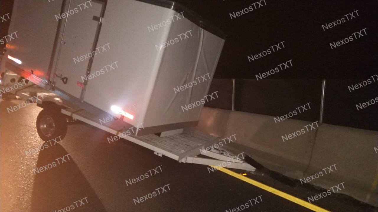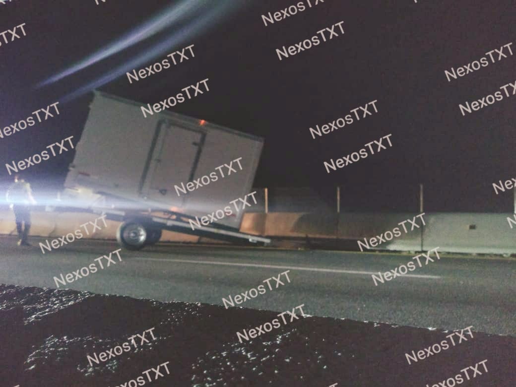 Una caja seca se desprendió de una unidad pesada, lo que provocó que esta saliera proyectada y se impactara contra el muro de contención de la carretera México – Veracruz, tramo la Y griega – Calpulalpan, a la altura del municipio de San Lucas Tecopilco.