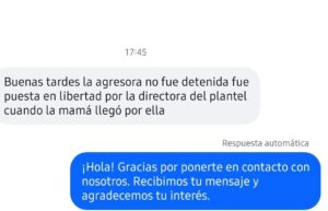 Los hechos ocurrieron la tarde del viernes 26 de septiembre, cuando la estudiante sorprendió a su ex pareja, identificado con las siglas S.H.S.F., de 17 años, durante un receso en la avenida Zaragoza, dentro del plantel. Según testimonios, la agresora reaccionó al ver al joven acompañado de otra alumna. Tras un intento de agredir a la compañera, el estudiante intervino y recibió un corte en el cuello con un objeto punzocortante, presuntamente un cúter.