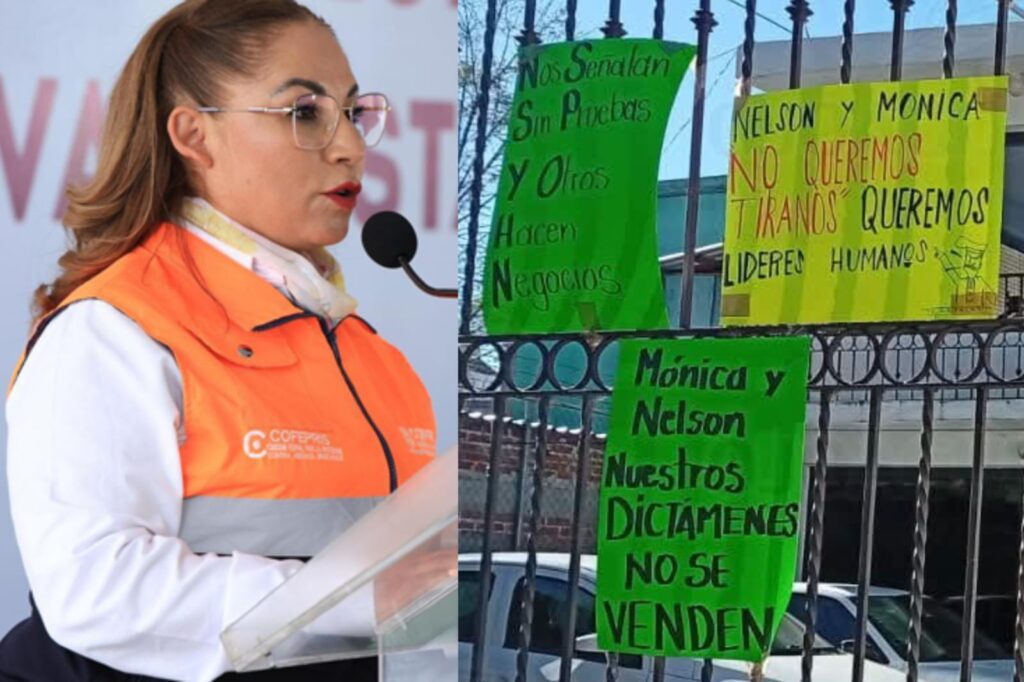 Un grupo de trabajadores de base de la Gerencia Regional número 1 de la Coeprist realizó una protesta para denunciar presuntos abusos, acoso laboral y manipulación de dictámenes sanitarios por parte de la comisionada Mónica Yazmín Jiménez Gutiérrez y del gerente regional Nelson Edgardo Medel del Razo.