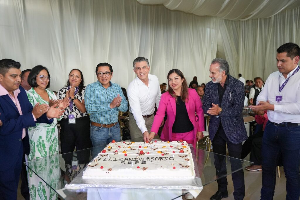 Durante su intervención, Sánchez García subrayó que los empleados de la SEPE representan un pilar en la vida pública de Tlaxcala, pues su compromiso fortalece la educación y también impulsa el buen desempeño gubernamental.