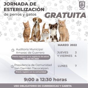 Con la finalidad de concientizar a la población sobre el cuidado responsable de las mascotas como perros y gatos, el H. Ayuntamiento de Amaxac de Guerrero, efectuará campaña de esterilización de forma gratuita.
