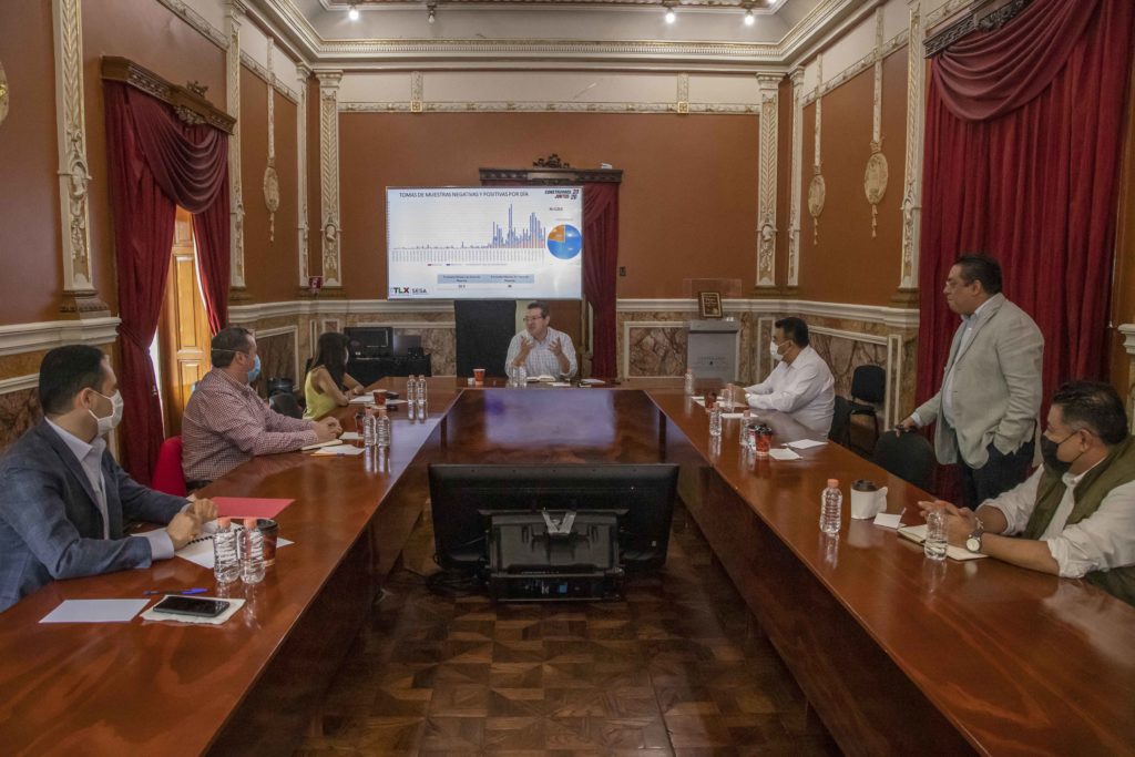 Marco Mena dio a conocer que en la reunión se revisaron las zonas de mayor contagio, la disponibilidad de equipo de bioseguridad e insumos médicos, así como el avance de las “Brigadas Cuídate”, que atienden a personas con diabetes e hipertensión.