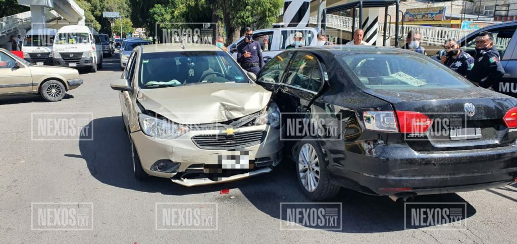 Cuantiosos daños materiales y afectación a la circulación con sentido al municipio de Chiautempan, fue el saldo que dejó un hecho de tránsito entre dos vehículos particulares.