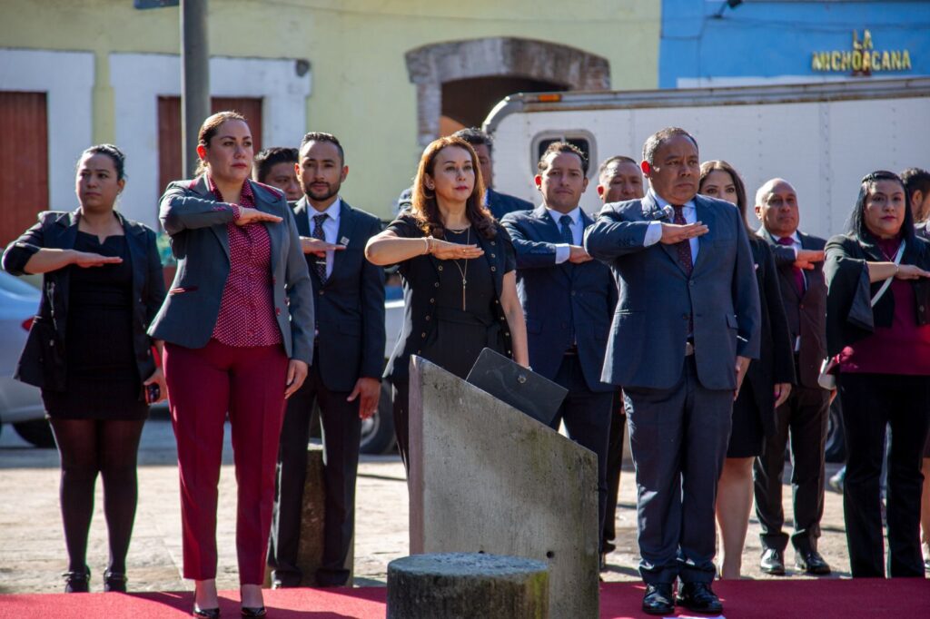 El presidente municipal de Apizaco, Javier Rivera Bonilla, encabezó junto con integrantes del Ayuntamiento la ceremonia de izamiento de la Bandera de México en la Plaza de la Constitución de Tlaxcala, en el marco del inicio de las celebraciones por el mes patrio.