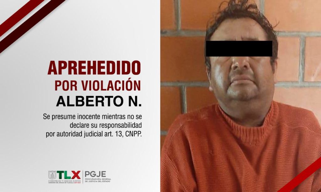 Producto de una investigación exhaustiva y científica a cargo de los oficiales de la Policía de Investigación adscritos a la Procuraduría General de Justicia del Estado (PGJE), se logró identificar y aprehender a Alberto N., como probable responsable del delito de violación en agravio de su hija menor de edad.