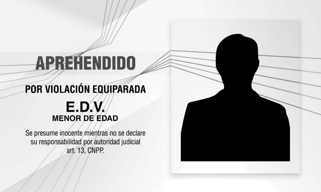 La Procuraduría General de Justicia del Estado (PGJE) a través de la Policía de Investigación, logró la captura del menor infractor de iniciales E.D.V., de 14 años de edad, quien contaba con una orden de aprehensión por el delito de violación equiparada agravada.