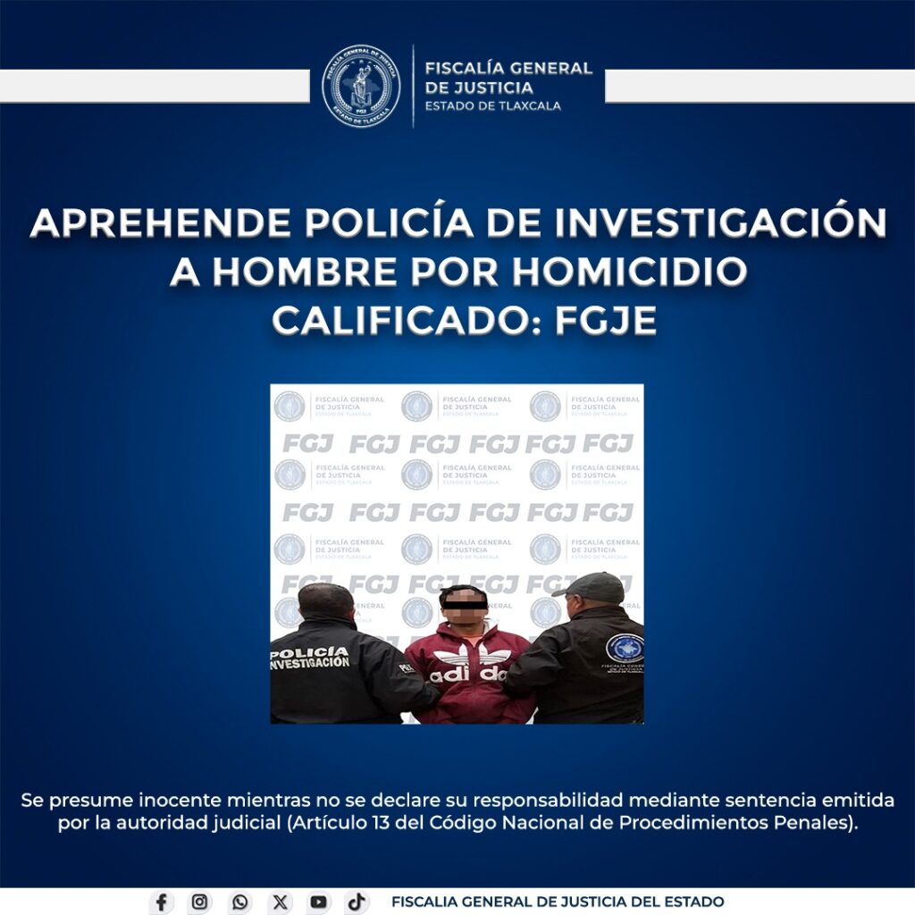 Elementos de la Policía de Investigación de la Fiscalía General de Justicia del Estado (FGJE) aprehendieron a Víctor N., por su probable responsabilidad en el delito de homicidio calificado.