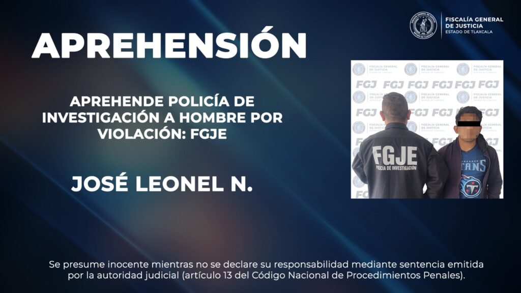 Derivado de ello, elementos de Investigación llevaron a cabo labores de inteligencia y lograron aprehender a José Leonel N. en el municipio de Tlaxcala, donde se le informaron los derechos que le asisten como persona detenida, así como el motivo de su detención.