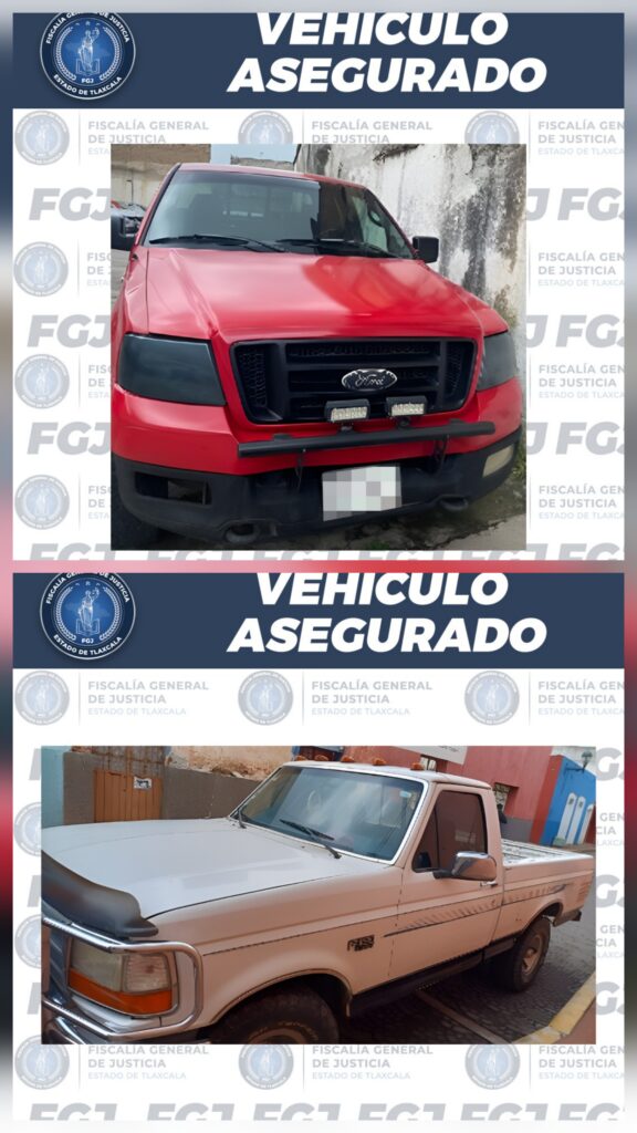 Ante la imposibilidad de acreditar su legítima propiedad, debido a la presentación de supuestos documentos apócrifos, elementos de la Policía de Investigación de la Fiscalía General de Justicia del Estado (FGJE), aseguraron dos camionetas marca Ford Pick Up; una modelo 1995, color blanco y otra de color rojo, tipo F150 modelo 2004.