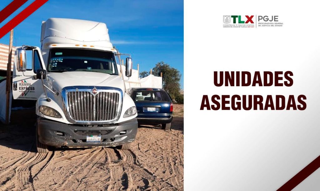 Oficiales de la Policía de Investigación adscritos a la Procuraduría General de Justicia del Estado (PGJE) aseguraron en el municipio de San Pablo del Monte a siete sujetos en el momento que descargaban mercancía del interior de un tractocamión que fue reportado como robado en el estado de Puebla.