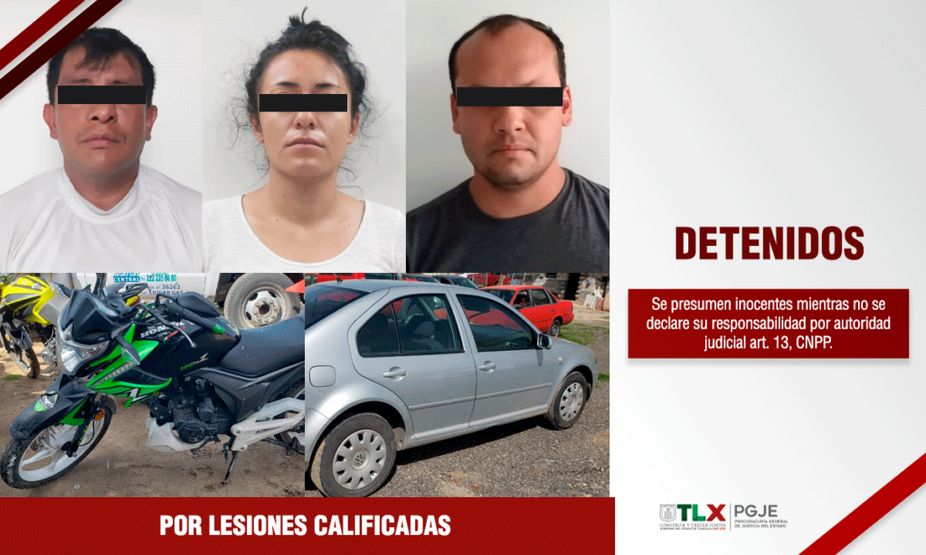 Por lo anterior, quienes dijeron a llamarse Rigoberto N., de 48 años de edad, originario de la Ciudad de México; Yeseli N., de 20 años, originaria de Coahuila y Ricardo N., de 44 años de edad, oriundo de Veracruz, fueron puestos a disposición del Agente del Ministerio Público por el delito de lesiones calificadas.