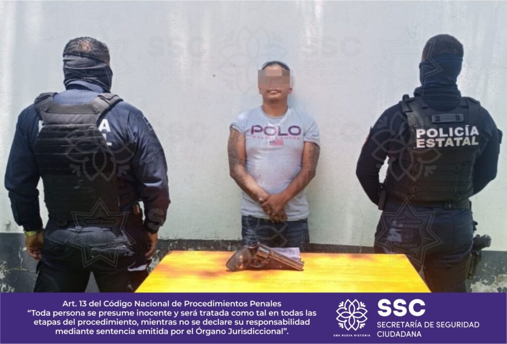 Los hechos ocurrieron en el municipio de Tepeyanco, luego de que una persona alertara a las autoridades sobre la presencia de un individuo que, a bordo de un vehículo marca Nissan, tipo Máxima, color negro y con placas de circulación del estado de Tlaxcala, presuntamente amedrentaba a transeúntes exhibiendo un arma de fuego.