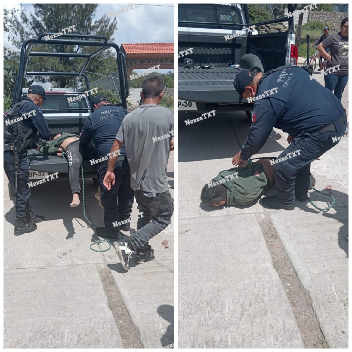 Policías municipales acudieron a la esquina de las calles Durango y Jalisco de la comunidad en mención, dónde observaron que al menos 30 personas golpeaban a un individuo, al cual habían atado de pies y manos.