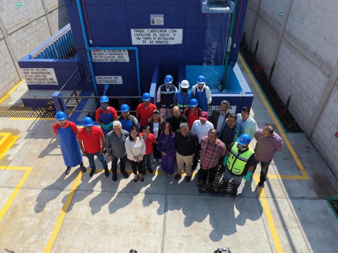 La gobernadora de Tlaxcala Lorena Cuéllar Cisneros realizó una visita a la planta de tratamiento de aguas residuales del taller de lavandería de mezclilla “Ekccolav”, propiedad de Valentín Huerta Hernández, ubicada en la comunidad de San Mateo Ayecac, municipio de Tepetitla, la cual se convirtió en la primera planta con inversión privada de la región.