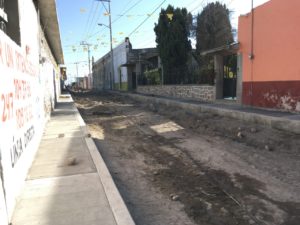 Al respecto, el Munícipe indicó que en el tema de la colocación de drenaje, se ha concluido al cien por ciento en la parte norte de esta calle, y de lado sur, se tiene un avance del 40 por ciento, en el tema de agua potable reveló que los trabajos han progresado en un 70 por ciento, mientras que la colocación de concreto hidráulico se llevará a cabo una vez que se termine la construcción de las guarniciones y banquetas las cuales llevan un avance del 90 por ciento.