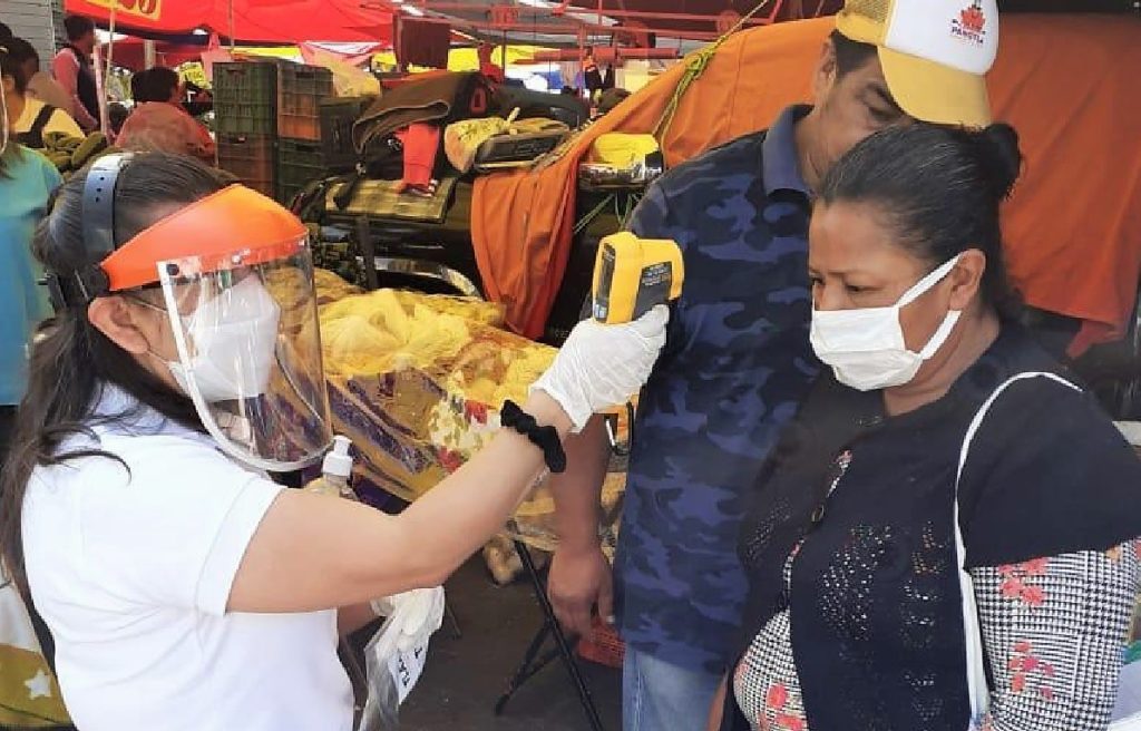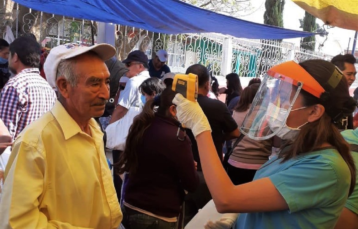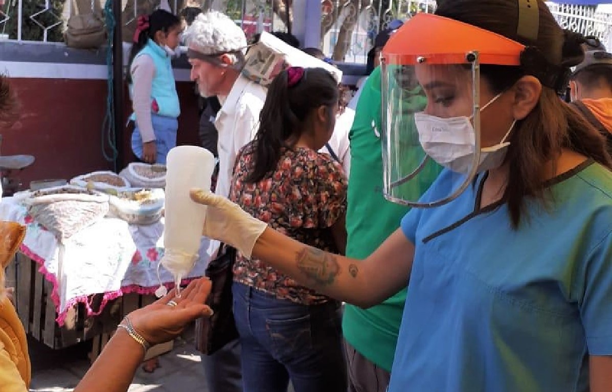 La Secretaría de Salud (SESA) entregó dos mil cubrebocas a población de riesgo, distribuyó 24 litros de gel antibacterial y tomó la temperatura corporal a personas que acudieron a mercados de los municipios de Tlaxcala, Apizaco y El Carmen Tequexquitla, como parte de las acciones que implementó el Gobierno del Estado ante la emergencia sanitaria nacional por Covid-19.