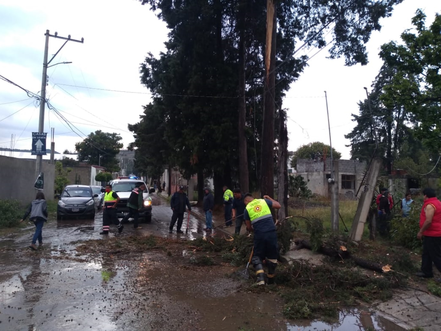 La intensa lluvia también generó la caída de un árbol en la comunidad de San Esteban Tizatlán, que atendieron los cuerpos de emergencia.