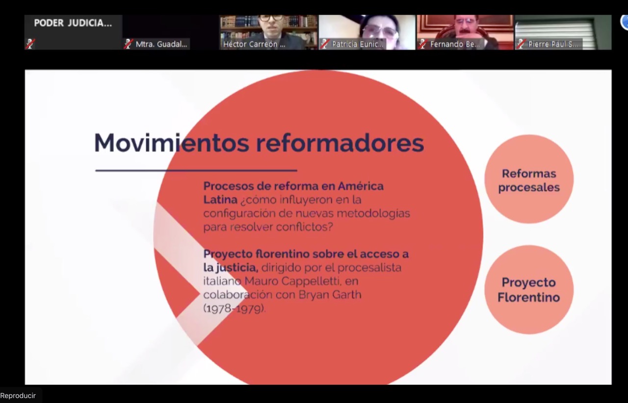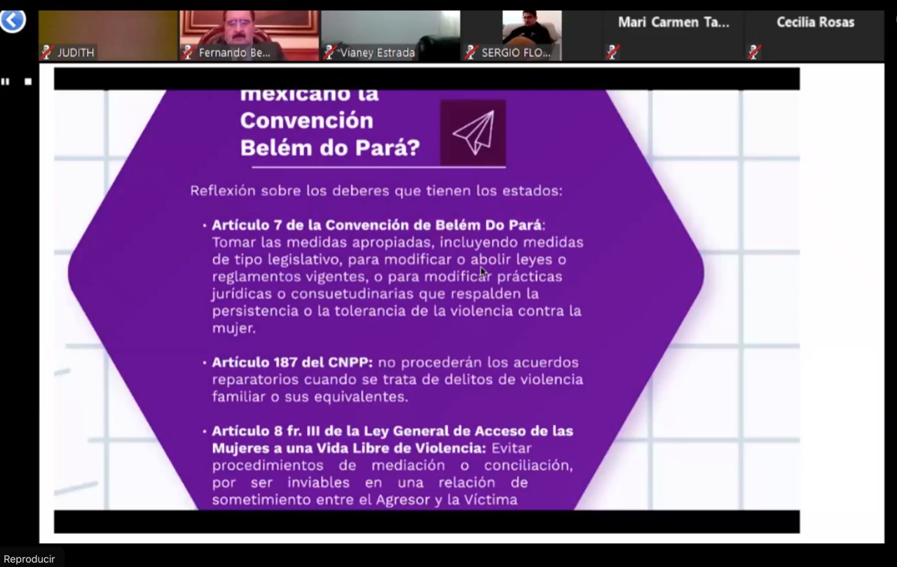 Después de la inauguración, inició el ciclo de conferencias con el tema “Consideraciones sobre la Justicia Restaurativa y la Perspectiva del Género en Materia Penal” a cargo del Dr. Héctor Carreón Perea, profesor de INACIPE y miembro de la Asociación latinoamericana de Derecho Penal y Criminología.