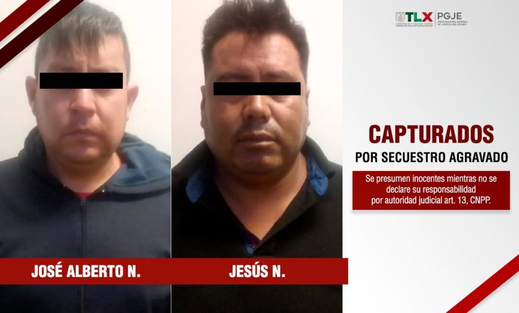 La Procuraduría General de Justicia del Estado (PGJE) a través de la Unidad de Investigación del Delitos de Alto Impacto (UIDAI), capturó a Luis Alberto N., y Jesús N., por su probable participación en el secuestro agravado de un hombre en el municipio de Apizaco.