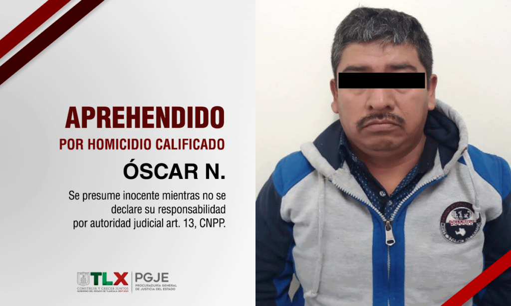 Producto del puntual seguimiento a las investigaciones de delitos de alto impacto, la Procuraduría General de Justicia del Estado (PGJE) a través de los oficiales de la Policía de Investigación, logró la captura de Óscar N., quien contaba con una orden de aprehensión por el delito de homicidio calificado.
