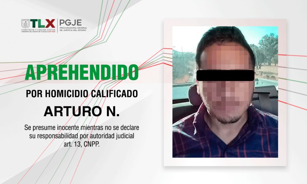 La Procuraduría General de Justicia del Estado (PGJE) a través de la Policía de Investigación, capturó a Arturo N., quien contaba con una orden de aprehensión vigente por el delito de homicidio calificado en victimización de su tío en 2019.