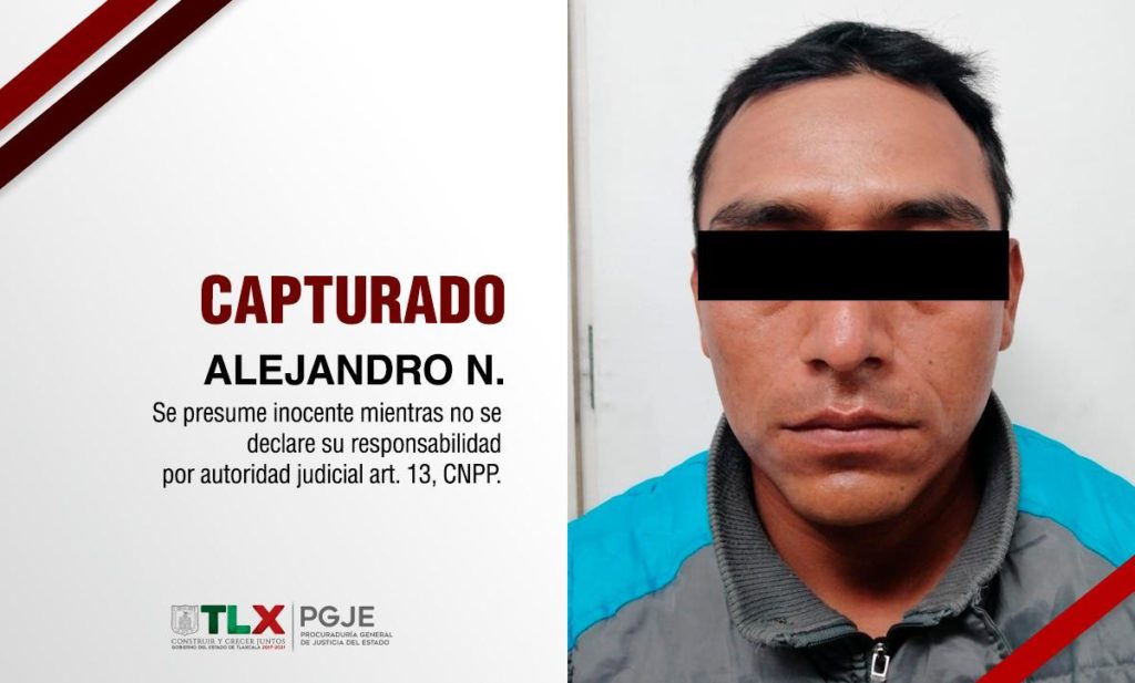 Por lo que a través de un oficio de colaboración, ambas dependencias aseguraron al indiciado de nombre Alejandro N., de 28 años de edad, en el municipio de Tlaxcala, para posteriormente trasladarlo a la entidad vecina donde enfrentará su proceso legal.