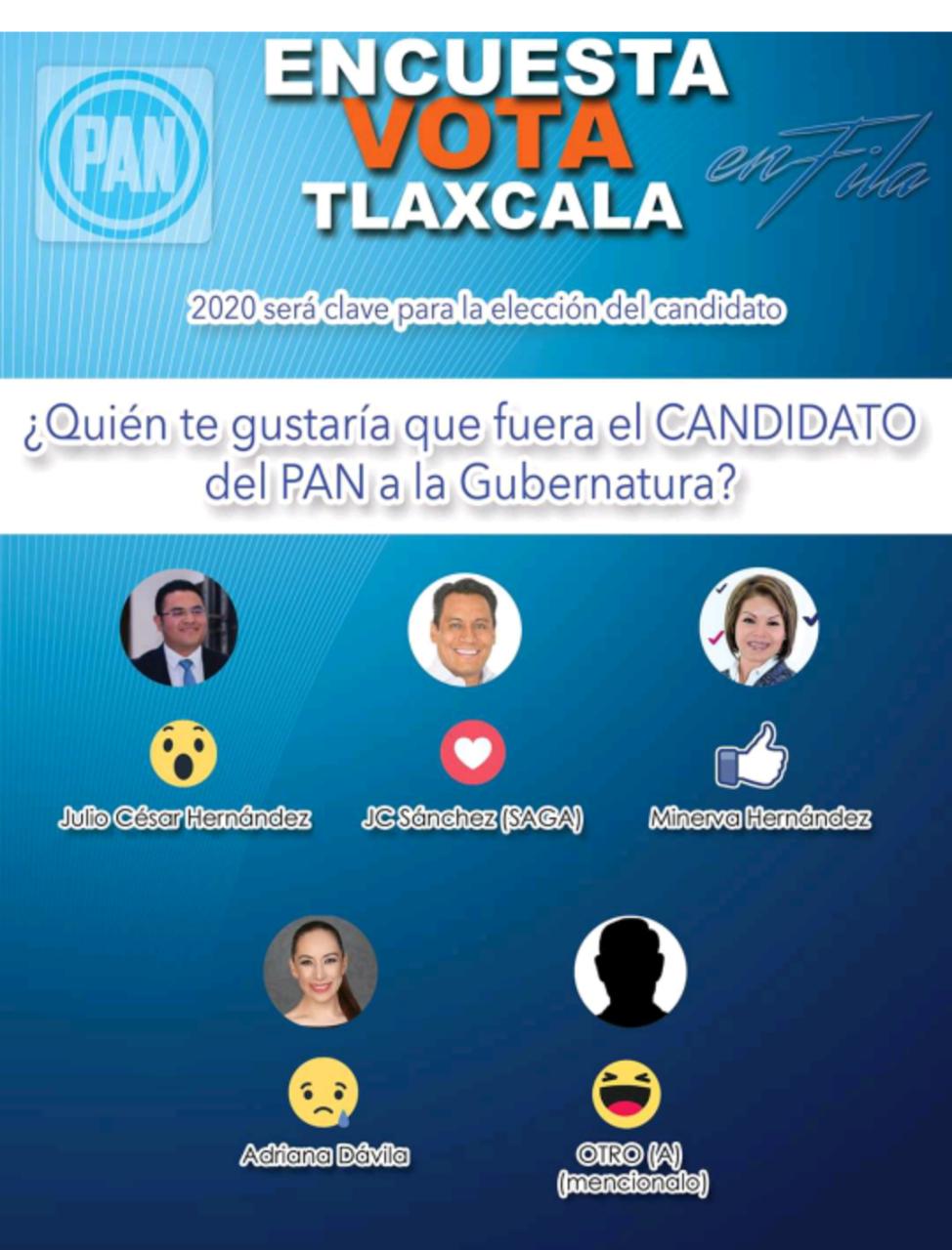 Una cuesta en redes sociales, reveló que los ciudadanos ven al presidente municipal de Apizaco, como la carta más fuerte del Partido Acción Nacional (PAN), para competir en las elecciones al Gobierno del Estado.