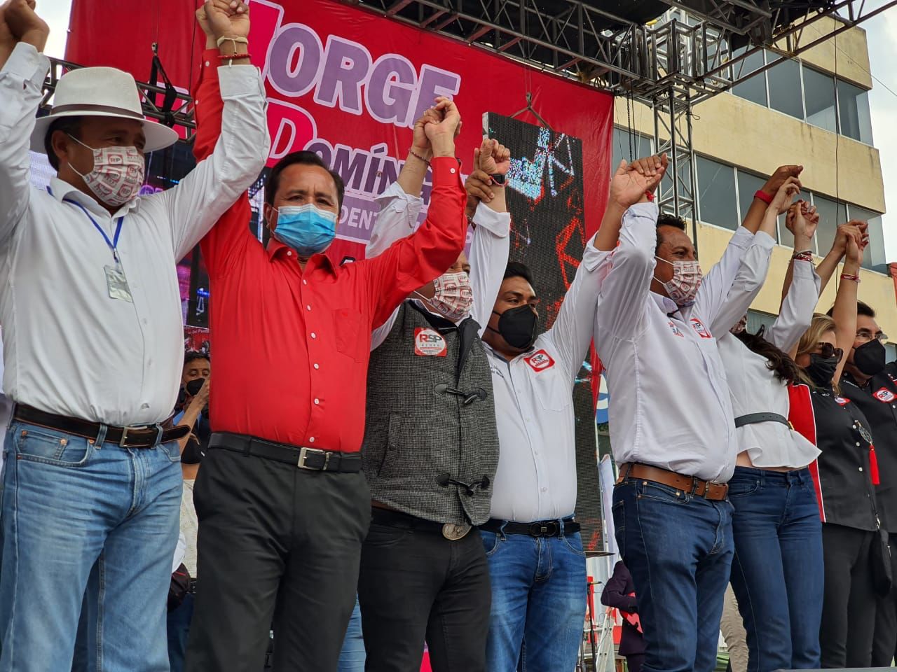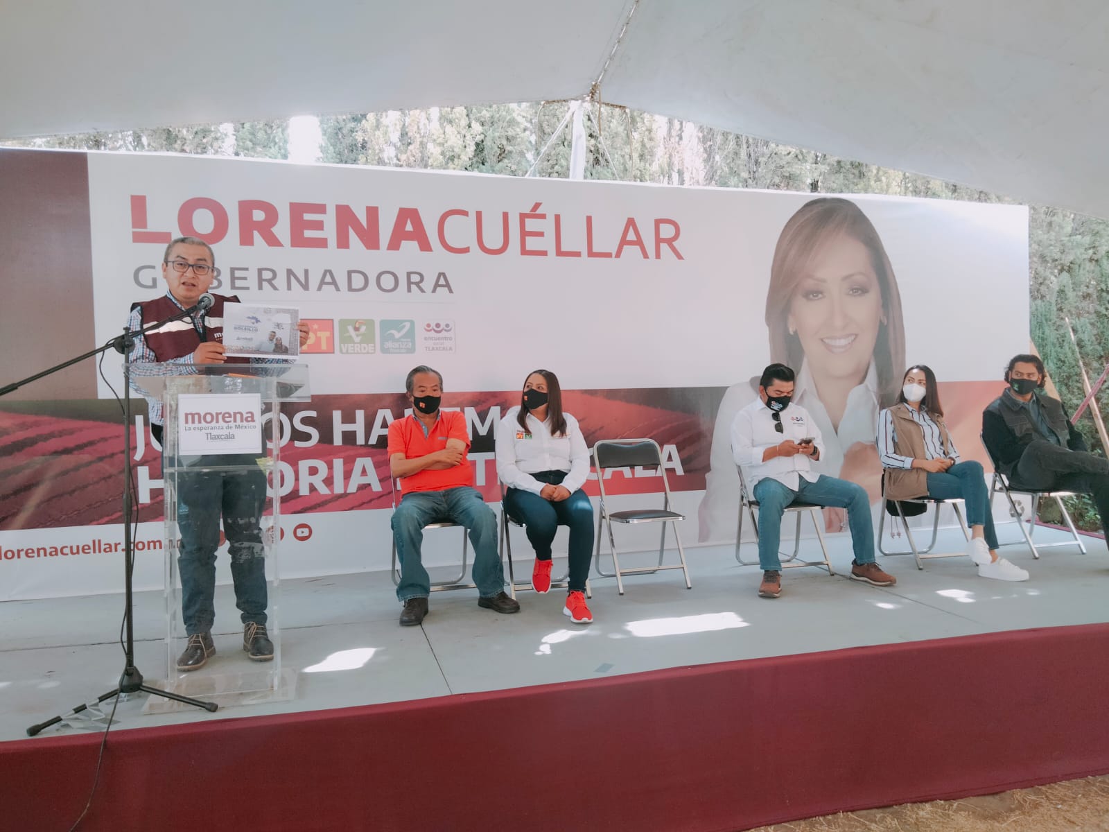 Al evento asistieron Noe Rodríguez Roldán dirigente estatal del PRI José Gilberto Temoltzin Martínez, presidente estatal del PAN; Julio César Pérez González, dirigente estatal del PRD; Serafín Ortiz Ortiz, dirigente estatal del PAC y Patricia Zenteno Hernández, presidenta estatal del PS; así como a los candidatos a diputados federales, de la Coalición Va x México, por el distrito 01, Julio César Hernández Mejía; por el distrito 02, Salvador Mendez Acametitla y por el distrito 03, Anabell Gutiérrez Sánchez. También acompañaron las dirigencias nacionales del PAN, PRI y PRD; Cecilia Romero Castillo, secretaria general adjunta del CEN del PAN y Ricardo Aguilar Castillo, secretario de organización del CEN del PRI. También refrendaron su apoyo el ex gobernador, Tulio Hernández Gómez; Bernardino Palacios dirigente estatal de Impacto Social SI; Liliana Becerril Rojas candidata al gobierno del estado por el PES, de la senadora Minerva Hernández Ramos, coordinadora general de la campaña; Alejandra Ramírez Ortiz, secretaria general del PAC; Adriana Dávila, diputada federal, Carlos Hernández Castillo líder de los candidatos Independiente; Delfino Suárez Piedras, candidato representante de los independientes, y los diputados de Morena Rafael Ortega, José María Méndez y Víctor Baez.