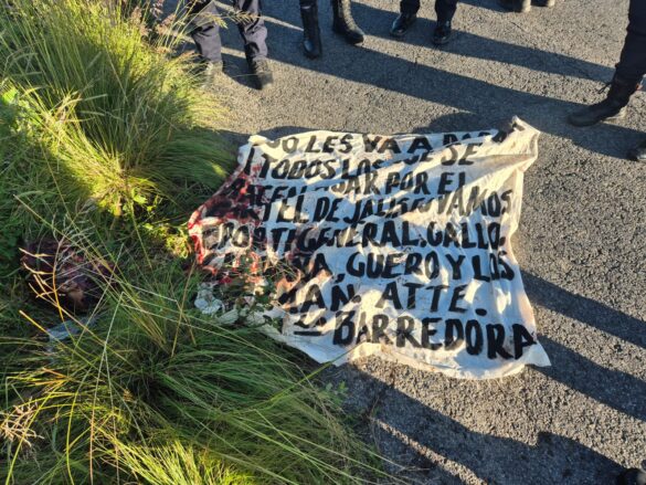 A un costado de los cuerpos se localizó una manta atribuida al grupo delictivo “La Barredora”, donde se lanzaban amenazas contra sus rivales y se mencionaban a “Carroñas”, “Gallo” y “Los Guzmán”.