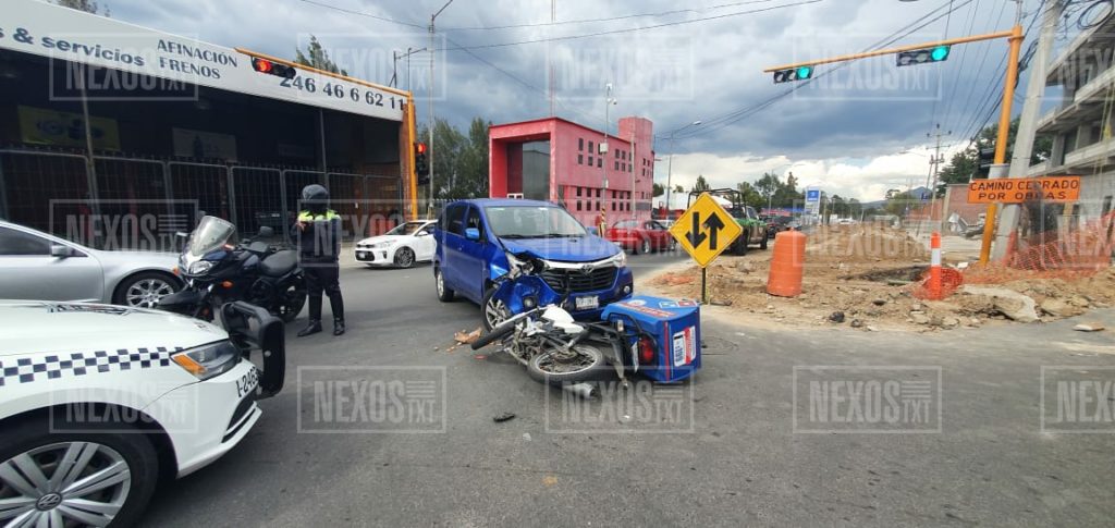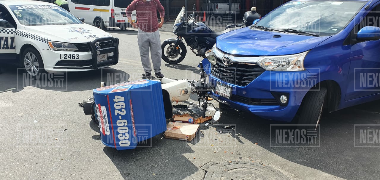 Un motociclista repartidor de pizza, resultó lesionado al impactar connuna camioneta en el bulevar Ocotlán – Chiautempan, con dirección a éste último municipio, la tarde de este domingo.