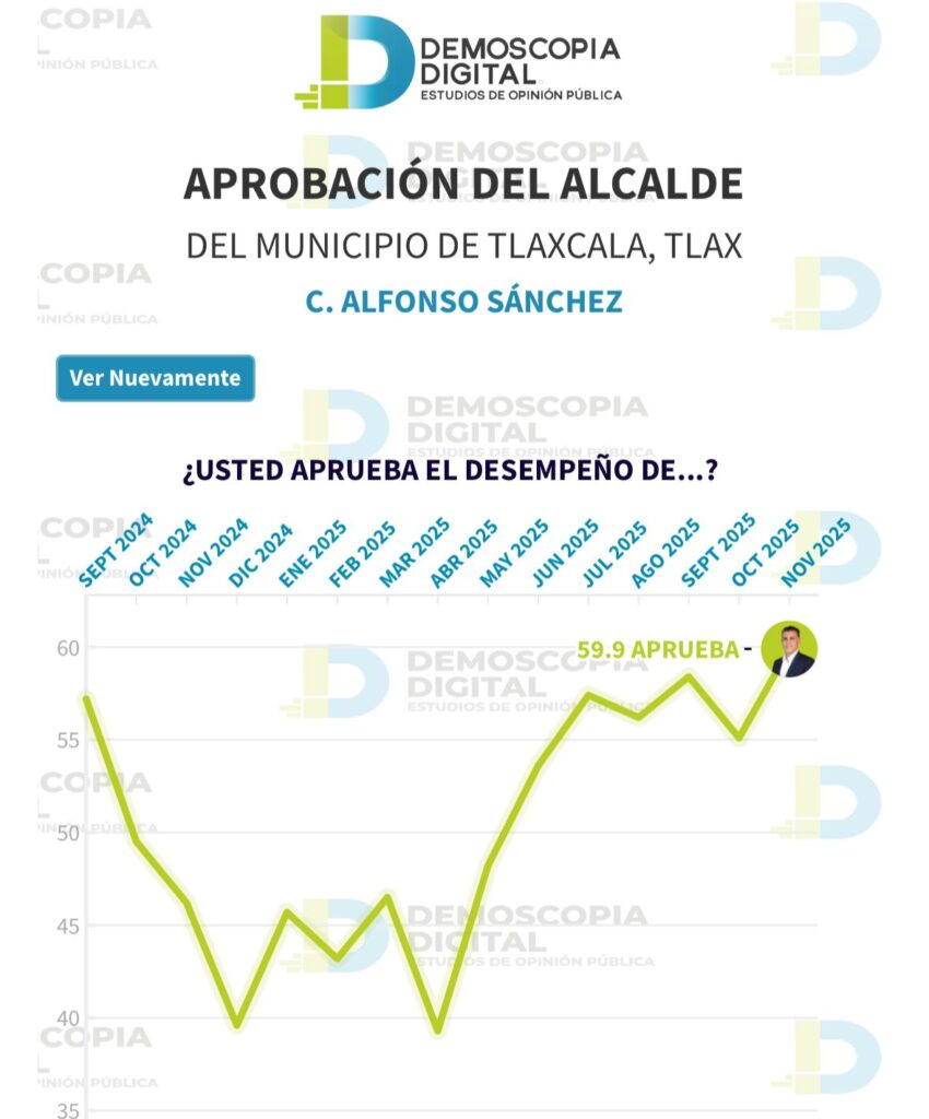 Alfonso Sánchez García cerró noviembre de 2025 como el alcalde mejor evaluado de Tlaxcala, luego de encabezar el ranking de aprobación elaborado por la encuestadora Demoscopía Digital.