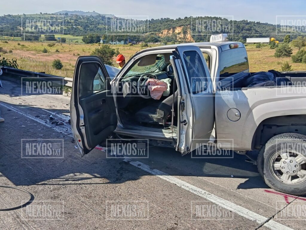 Sanctórum, Tlax.— La mañana de este viernes se registró un fuerte accidente en el kilómetro 196 del Arco Norte, a escasos metros de la caseta de cobro de Sanctórum, donde una camioneta Chevrolet Silverado se estrelló contra la parte trasera de un tráiler tipo nodriza. El impacto dejó como saldo cinco personas lesionadas, entre ellas un hombre que quedó atrapado en el interior del vehículo.