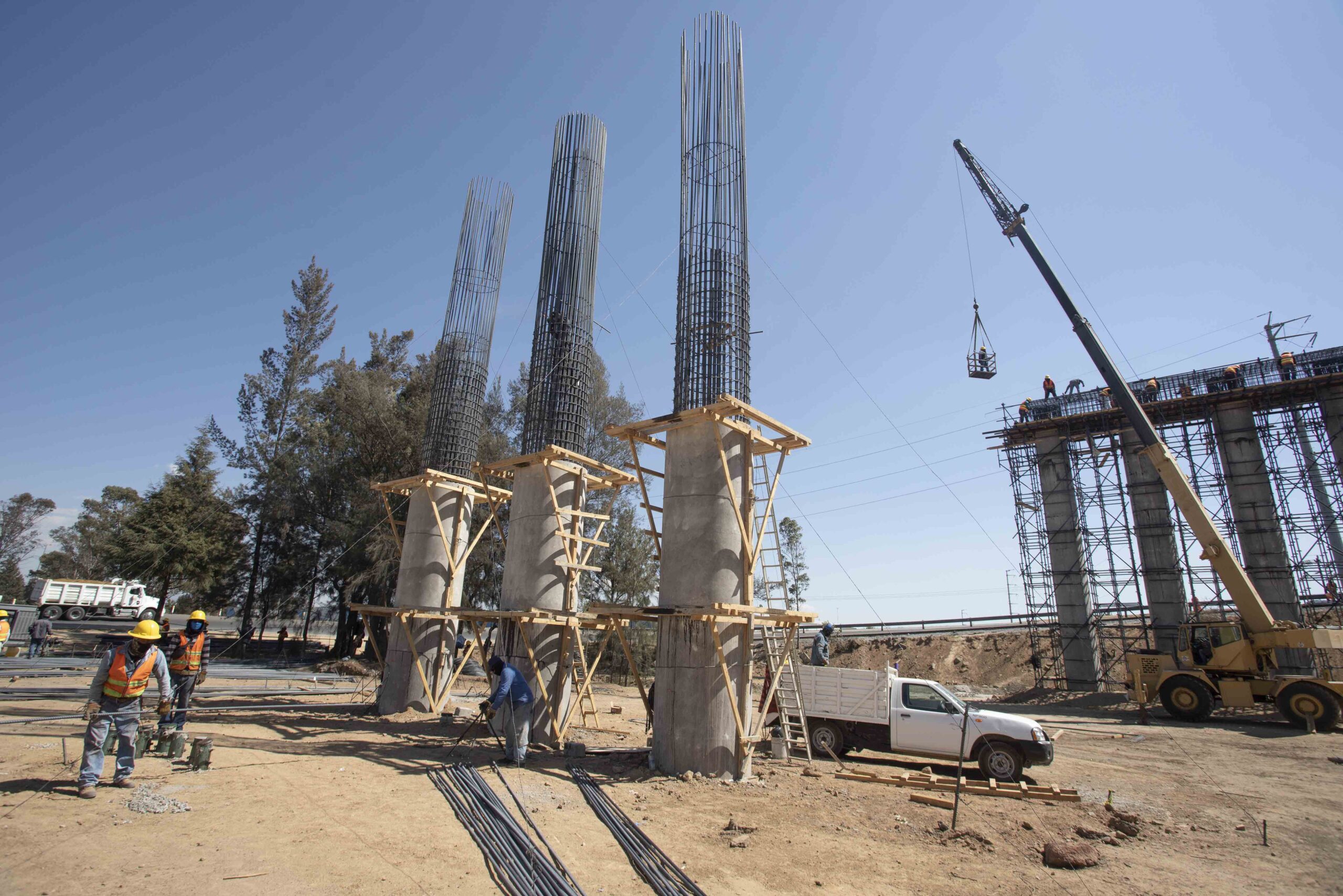 Como parte de los trabajos, actualmente se realiza la perforación de pilotes, colado de columnas y armado de cabezales para continuar con el montaje de trabes, de las 102 estructuras prefabricadas que en total se contempla colocar.